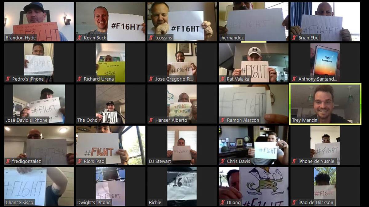 La novena de Baltimore publicó en su cuenta de Twitter dos fotografías en las que se ve a jugadores y demás empleados sosteniendo carteles con la expresión #F16HT, en alusión a la palabra 'fight' (lucha, en español) formada con el número 16, que identifica en la cancha al jardinero y primera base.