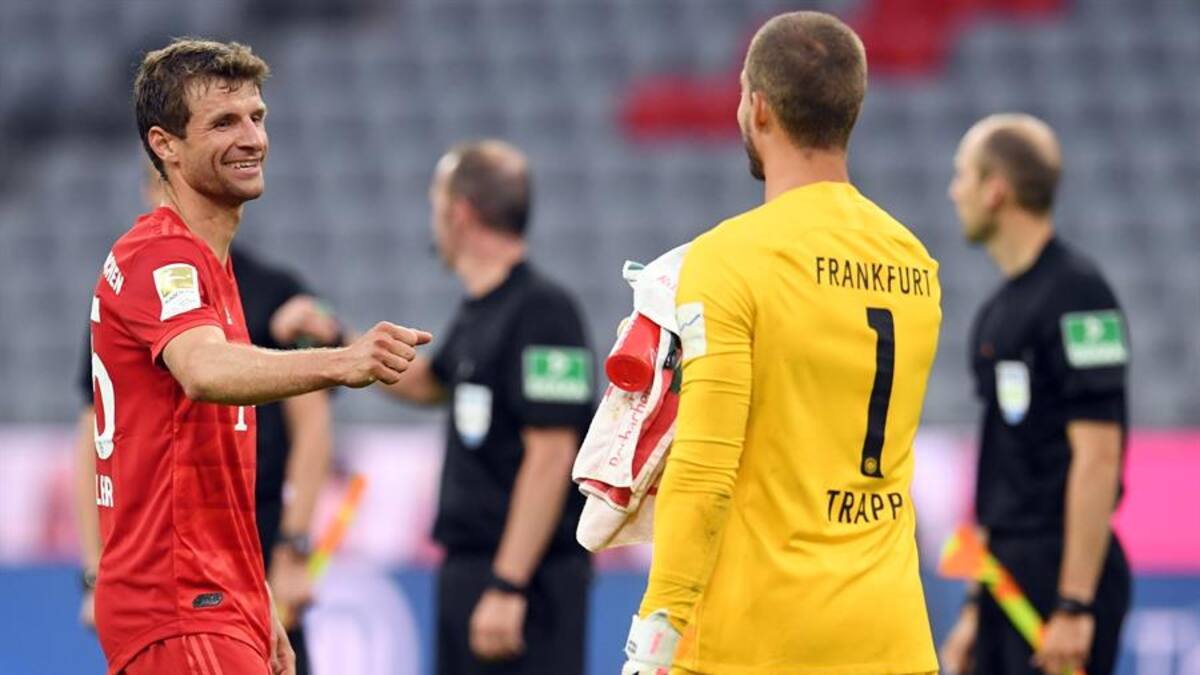 El Bayern se impuso este sábado por 5-2 al Eintracht Fráncfort y se vengó de la goleada que encajó en la primera vuelta contra el mismo equipo (5-1) guiado por Thomas Müller, que marcó un tanto y dio una asistencia.