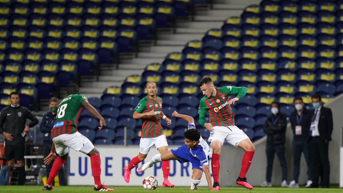 El buen hacer defensivo del Marítimo pudo quedar en nada justo al borde del descanso, con dos claras ocasiones de Sérgio Oliveira y, sobre todo, de Danilo Pereira, este último tras un gran centro del brasileño Alex Telles que sería protagonista al final del choque por su expulsión tras doble amarilla.
