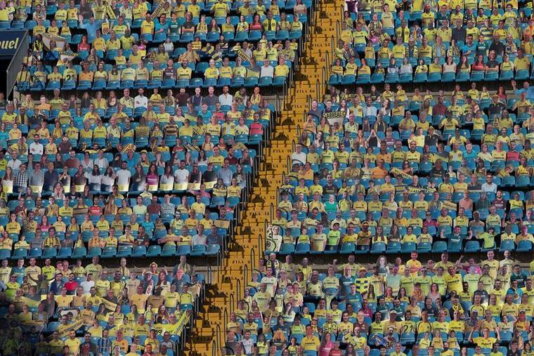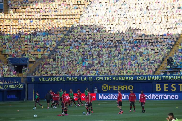 Imitando lo que han hecho varios equipos de Alemania, Villarreal, equipo en el cual juega el delantero porteño Carlos Bacca, adornó parte de las tribunas del estadio La Cerámica con fotografías de los hinchas del ‘Submarino Amarillo’, en el encuentro de la Liga de España ante Mallorca, este martes.