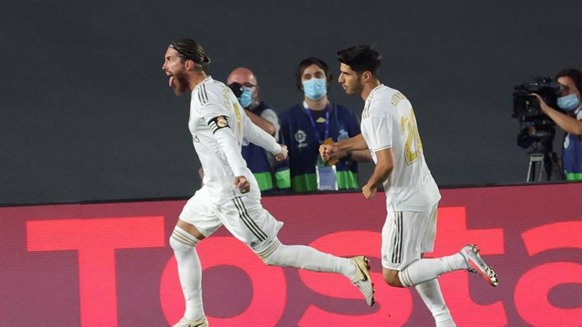El Real Madrid acaricia el título liguero ganando hasta cuando sufre. Sostenido por dos paradas de Courtois en momentos de inferioridad en el primer acto y con un giro decisivo al partido con la entrada de Rodrygo y Marco Asensio para cambiar el panorama de un partido gris al que no encontraba soluciones. La fe de Carvajal y el acierto de Ramos le dan un impulso decisivo.