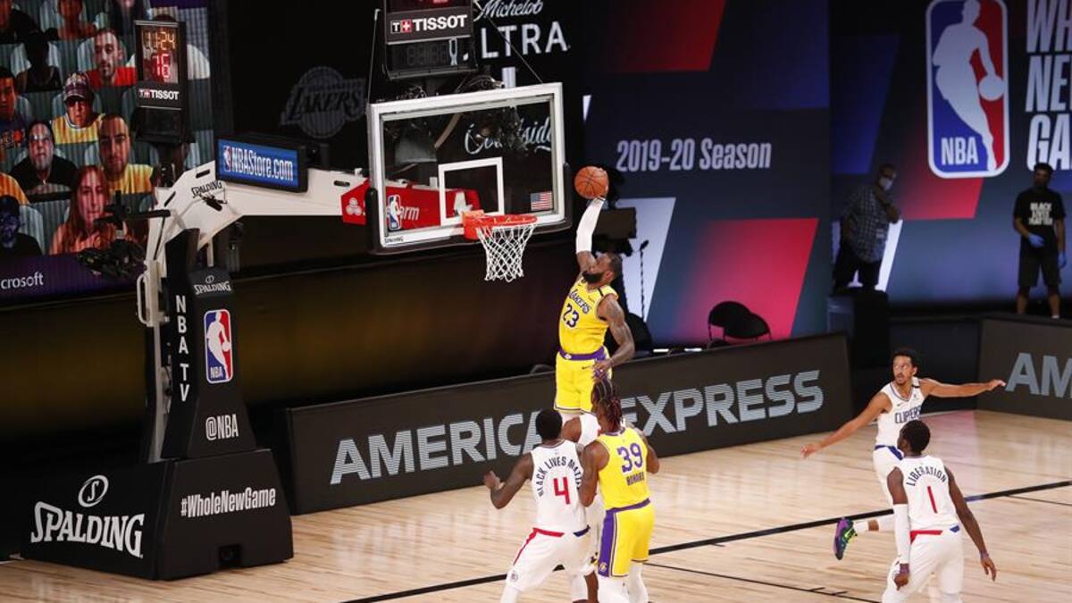 El alero estrella LeBron James volvió a surgir como el jugador decisivo de Los Angeles Lakers al anotar la canasta que decidió este jueves la victoria de su equipo por 103-101 ante Los Angeles Clippers en el segundo encuentro de la doble jornada de reinicio de la temporada 2019-20 de la NBA en la burbuja de Orlando.