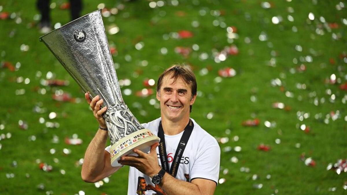 El entrenador del Sevilla, Julen Lopetegui, destacó este viernes, tras lograr su equipo la sexta Liga Europa al batir al Inter de Milán (3-2) en la final disputada en Colonia (Alemania), que este triunfo 'va por todos los sevillistas' que han 'ayudado desde el cielo' y también 'desde sus casas'.