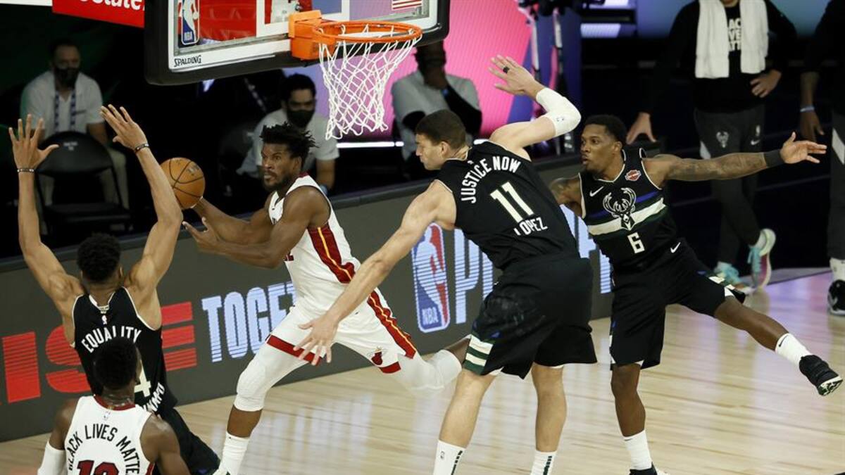 El escolta estrella Jimmy Butler anotó dos tiros libres antes que sonase la bocina y aseguró este miércoles la victoria por 116-114 de los Heat de Miami ante los Bucks de Milwaukee en el segundo partido de las semifinales de la Conferencia Este que ahora dominan por 2-0 al mejor de siete.