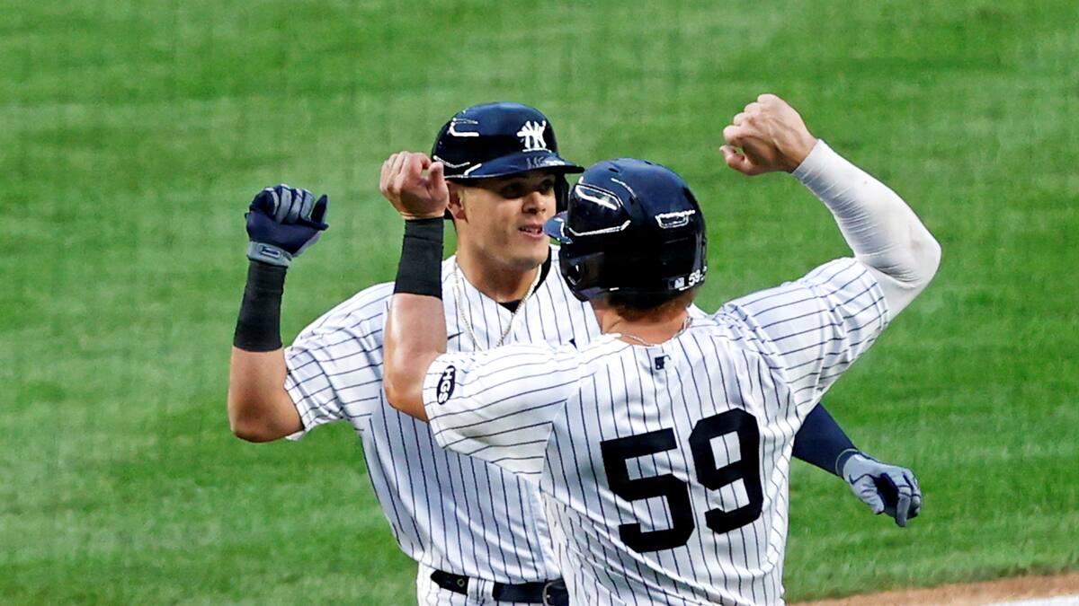 El guardabosques Brett Gardner (1) y el bateador designado Giancarlo Stanton (1) también se volaron la barda.