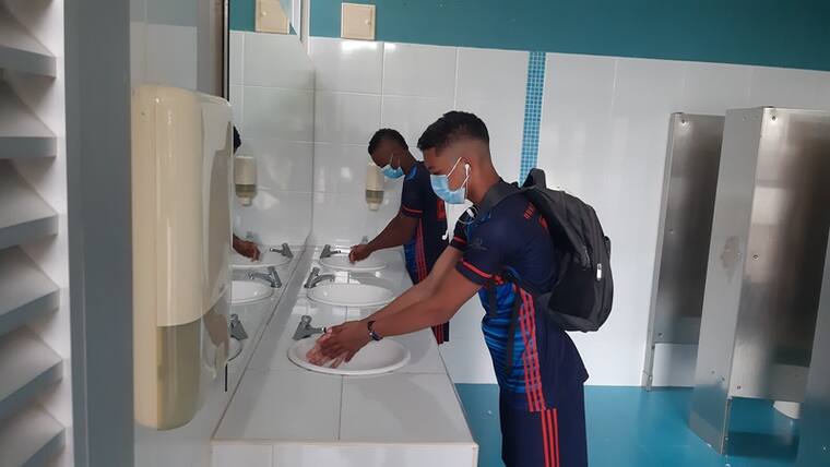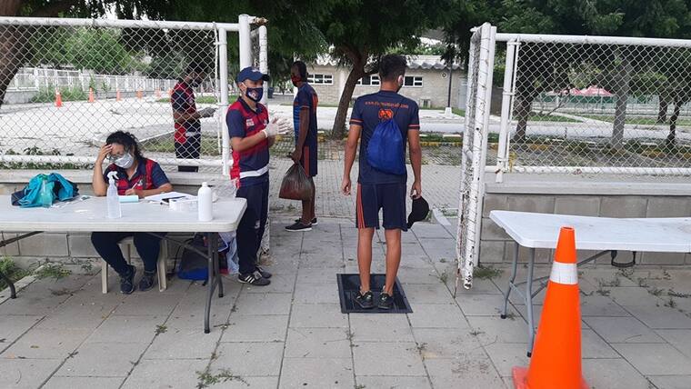 En su semillero, uno de los más tradicionales de Barranquilla, los jóvenes realizan el mismo proceso de bioseguridad y de entrenamiento (por circuitos individuales).