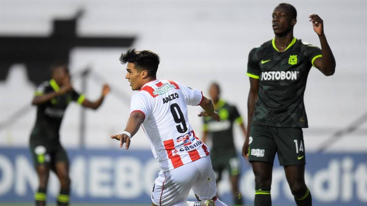 En la primera parte y cuando corrían apenas los primeros cinco minutos del juego, el River Plate sorprendió a la retaguardia visitante con su presión alta y llegó al gol gracias Arezo, quien aprovechó una serie de errores defensivos de los colombianos para convertir el 1-0.