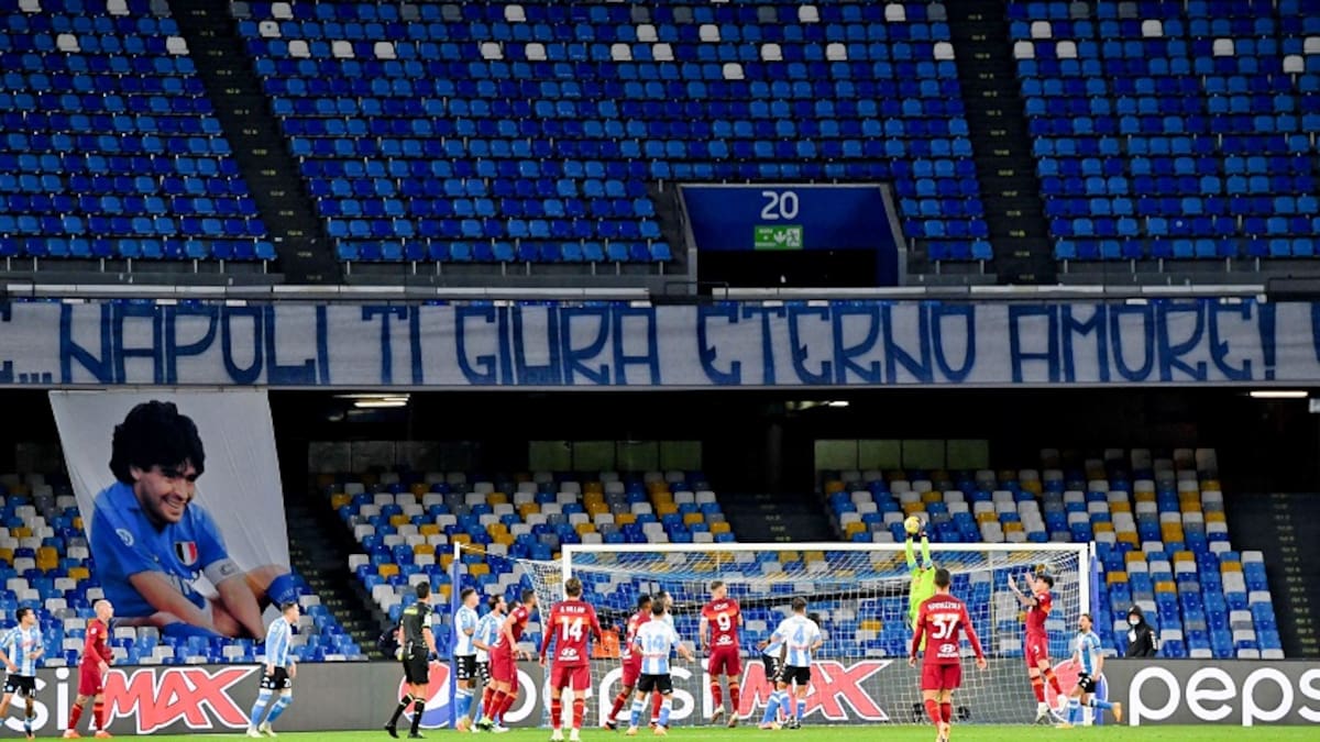 Y al llegar al minuto 10, como ya ocurrió en otros partidos de la novena jornada de la Serie A, el árbitro detuvo el juego para que los dos equipos y sus cuerpos técnicos brindaran un largo aplauso al Pibe de Oro.