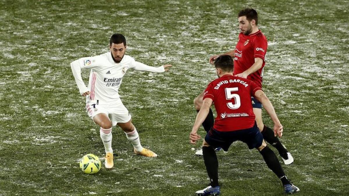 Finalmente, Osasuna sumó un nuevo punto ante un Real Madrid que no supo encontrarse en los 90 minutos que duró un partido marcado por el frío y la nieve.