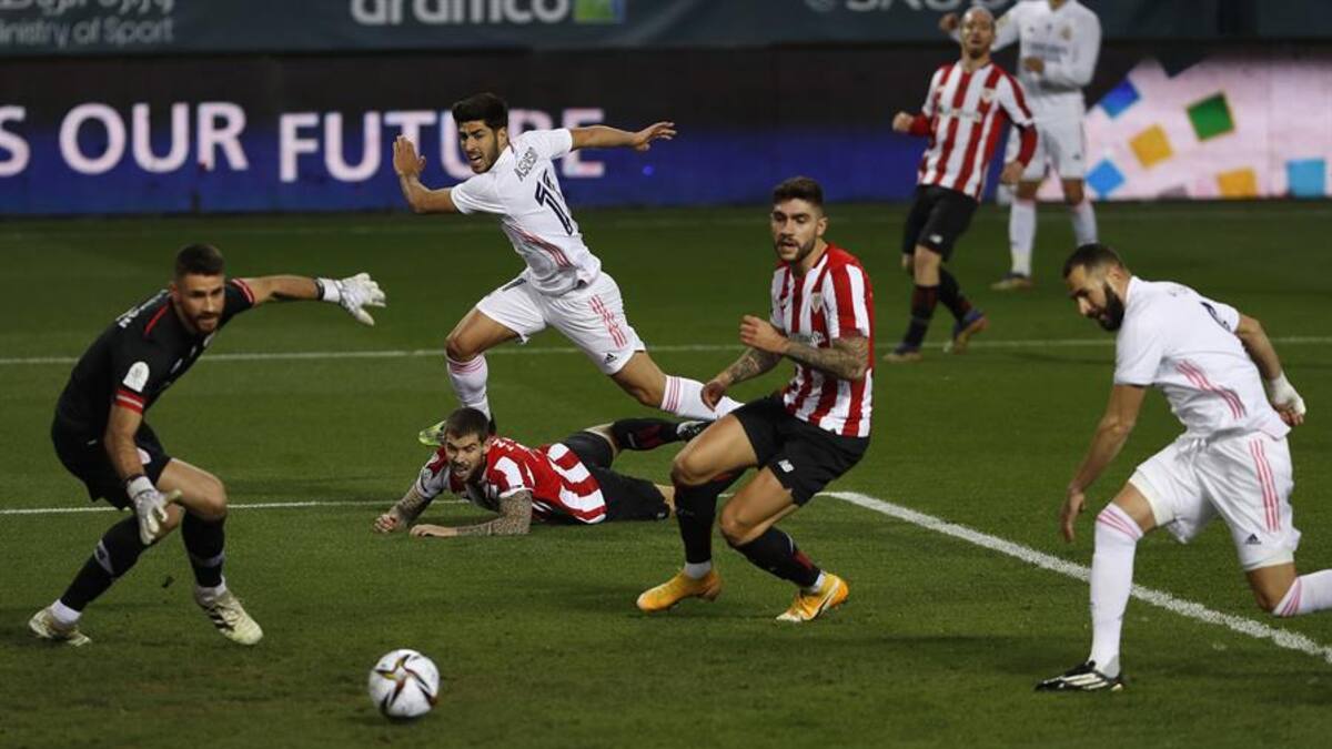 Se vio en la lona el Real Madrid y con una vida extra pero la fortuna le dio la espalda. Marco Asensio no se cansó de buscarlo, con disparos desde cualquier rincón, exhibiendo confianza y asumiendo responsabilidad. Rozaba el larguero de un zurdazo y se estrellaba con el poste tras un pase atrás de Hazard. El Athletic reculaba por cada minuto que pasaba y le empezaban a faltar fuerzas.