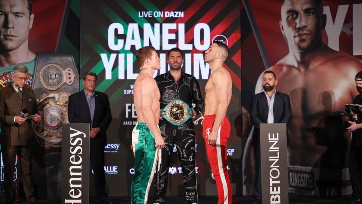 Vestido de rojo, Yildirim fue el primero en llegar a la ceremonia de pesaje, después de lo cual lo hizo ‘el Canelo’, con ropa deportiva con los colores verde, blanco y rojo de la bandera de su país.
