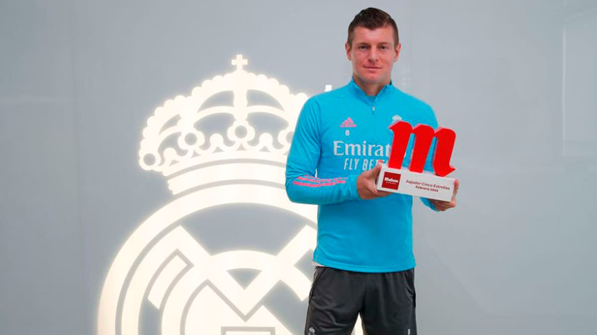 Toni Kroos, centrocampista alemán del Real Madrid, agradeció el galardón como 'Jugador Cinco Estrellas' de 'Mahou' del mes de febrero, y aseguró que prefiere conquistar esta temporada 'premios con el equipo'.