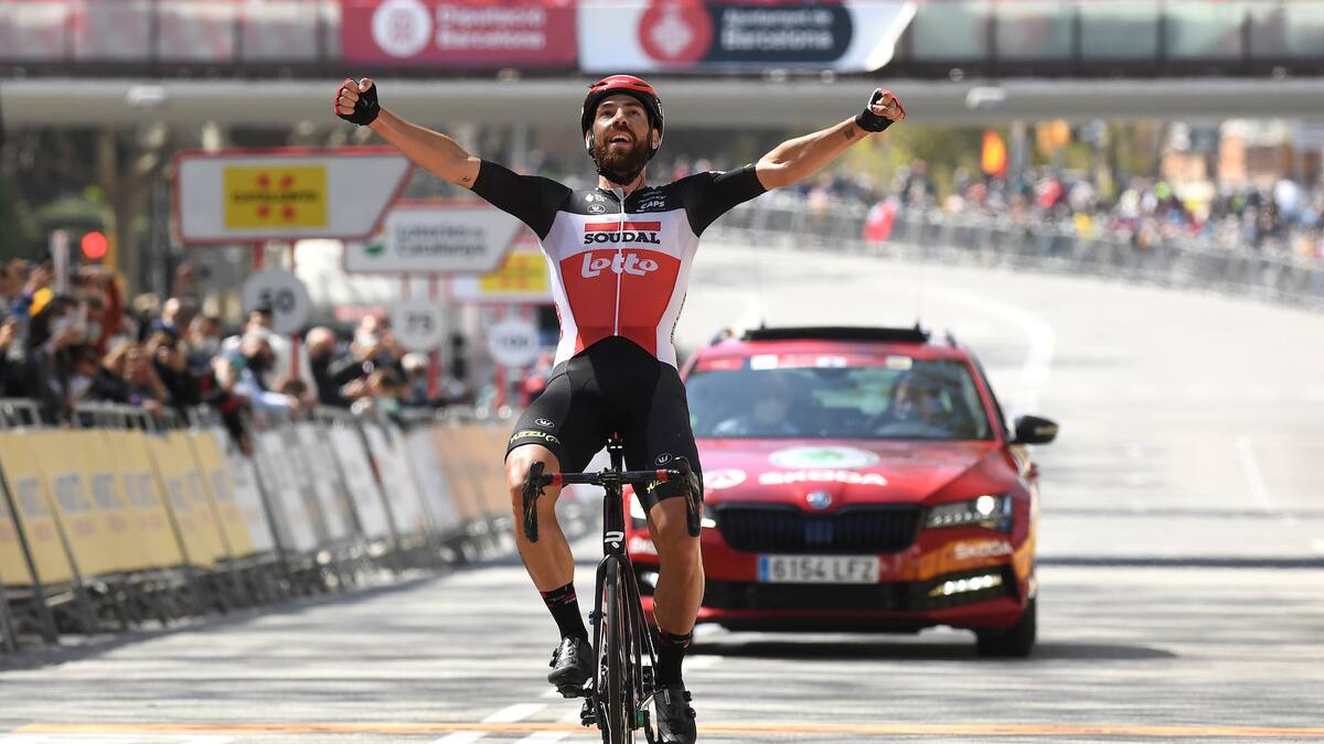 La victoria de etapa de De Gendt se sentenció en el último paso por la exigente rampa del castillo de Montjuïc con un ataque que dejó clavado a Mohoric. Así, la bajada hacia las fuentes de Montjuïc, donde estuvo ubicada la meta, fue un paseo triunfal para él.