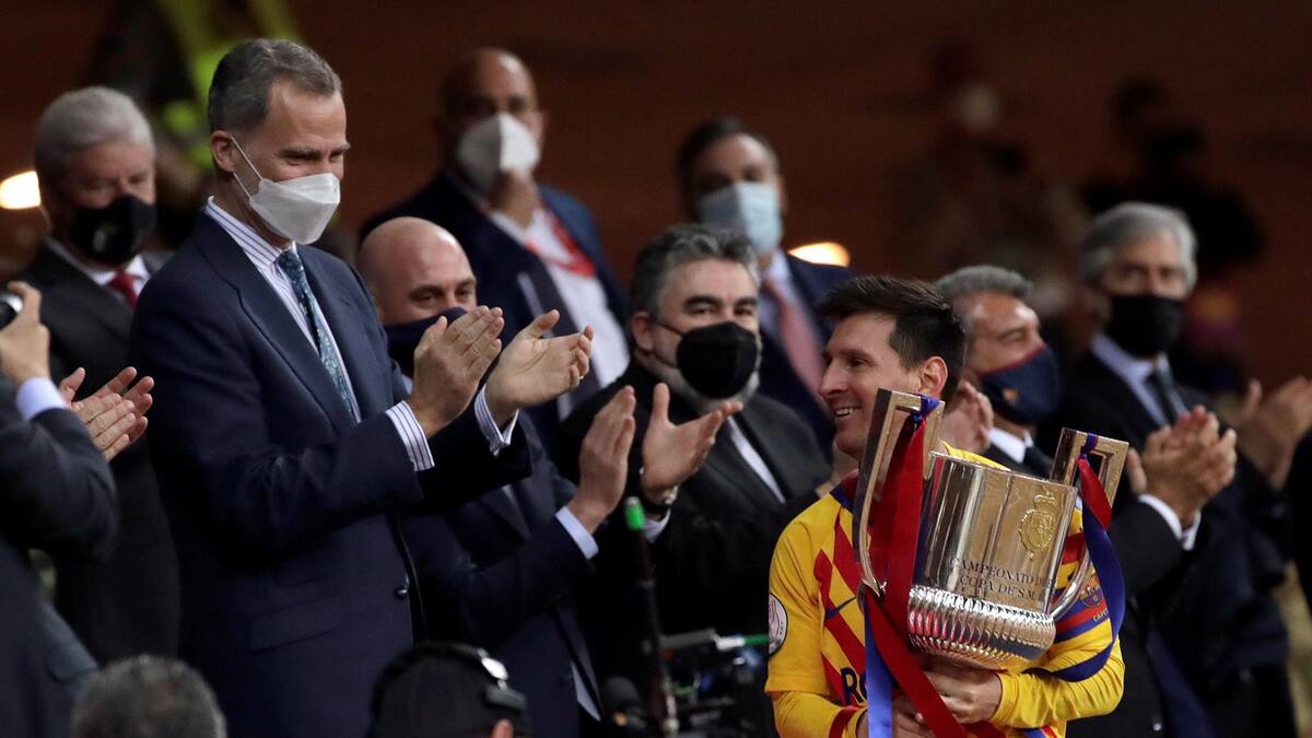 Laporta, que destacó que el argentino dio esta noche 'una exhibición, como el resto del equipo', en La Cartuja, espera que la 31ª Copa del Rey que conquistó el Barça inicie 'un ciclo de muchas copas' para el club en esta nueva etapa como presidente.
