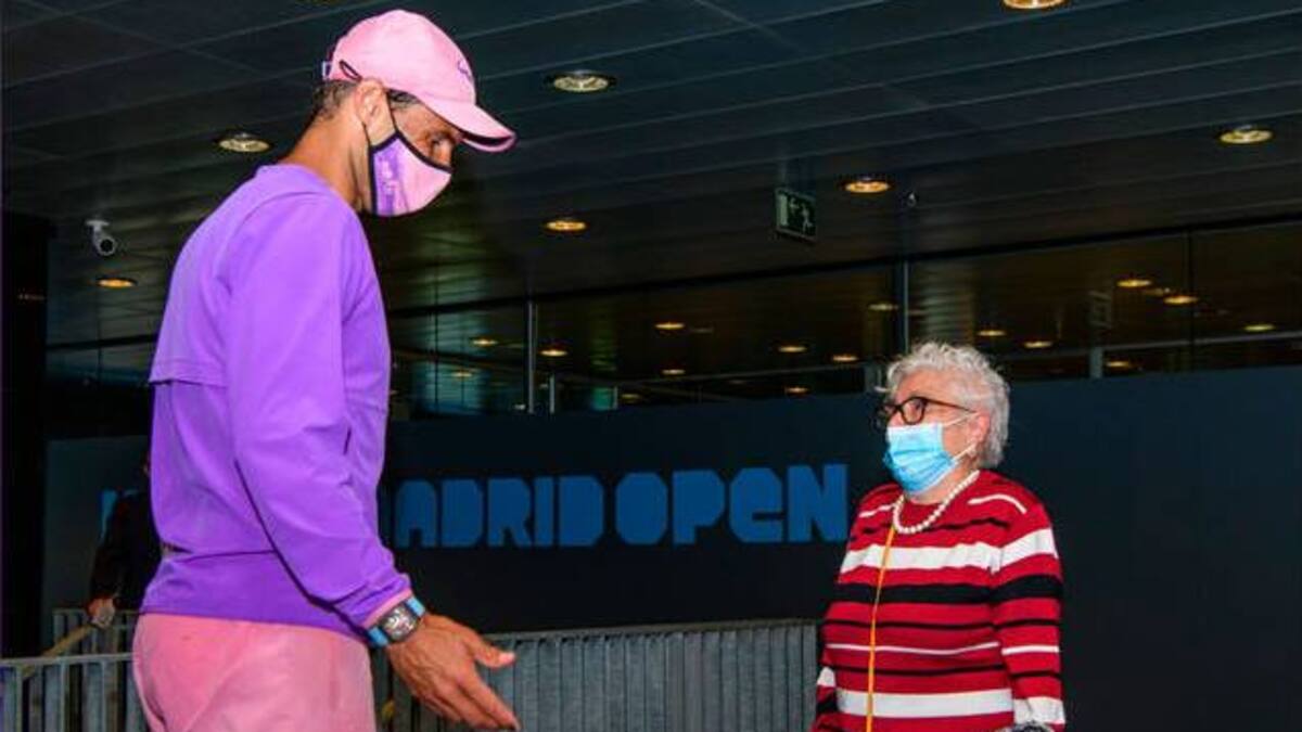 Manuela, una mujer de 95 años, con principio de Alzheimer, pudo hacer realidad una de sus grandes ilusiones, conocer a Rafael Nadal, con el que departió en las instalaciones de la Caja Mágica antes de disputar el encuentro contra el alemán Alexander Zverev.
