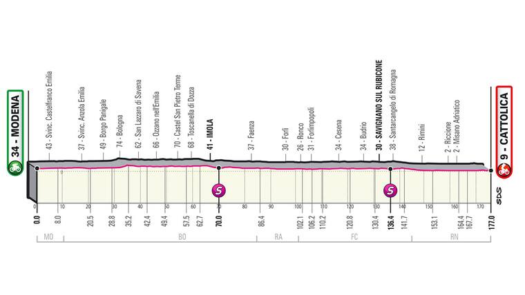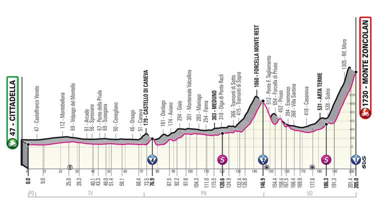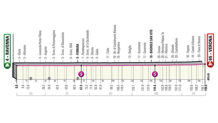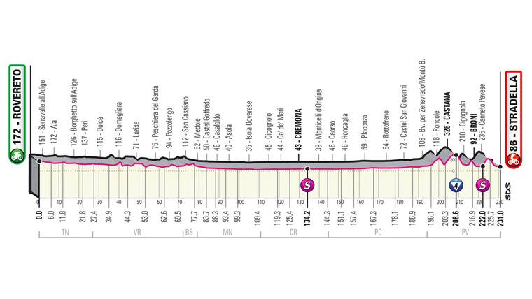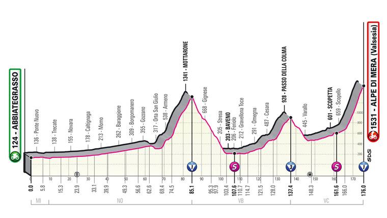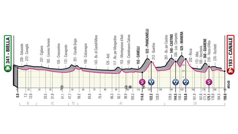 Este lunes se disputará la tercera etapa de la edición número 104 de la carrera, una jornada de 190 kilómetros y en la que los corredores partirán desde Biella y terminarán en Canale, después de superar tres puertos -uno de tercera categoría y dos de cuarta- en la parte final de la misma y que pueden servir para seleccionar el teórico esprint final