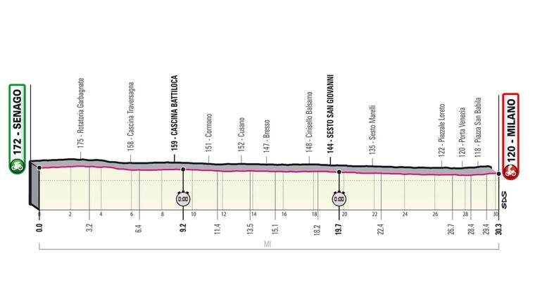 El italiano Filippo Ganna (INEOS) sigue como líder de la general e incluso ha aumentado algo su ventaja. Aprovechó el esprint intermedio bonificado para pasar en primera posición y meter tres segundos más a sus rivales. El belga Remco Evenepoel (Deceuninck), lanzado por su compañero de equipo, el portugués Joao Almeida, fue segundo y también sumó dos segundos.