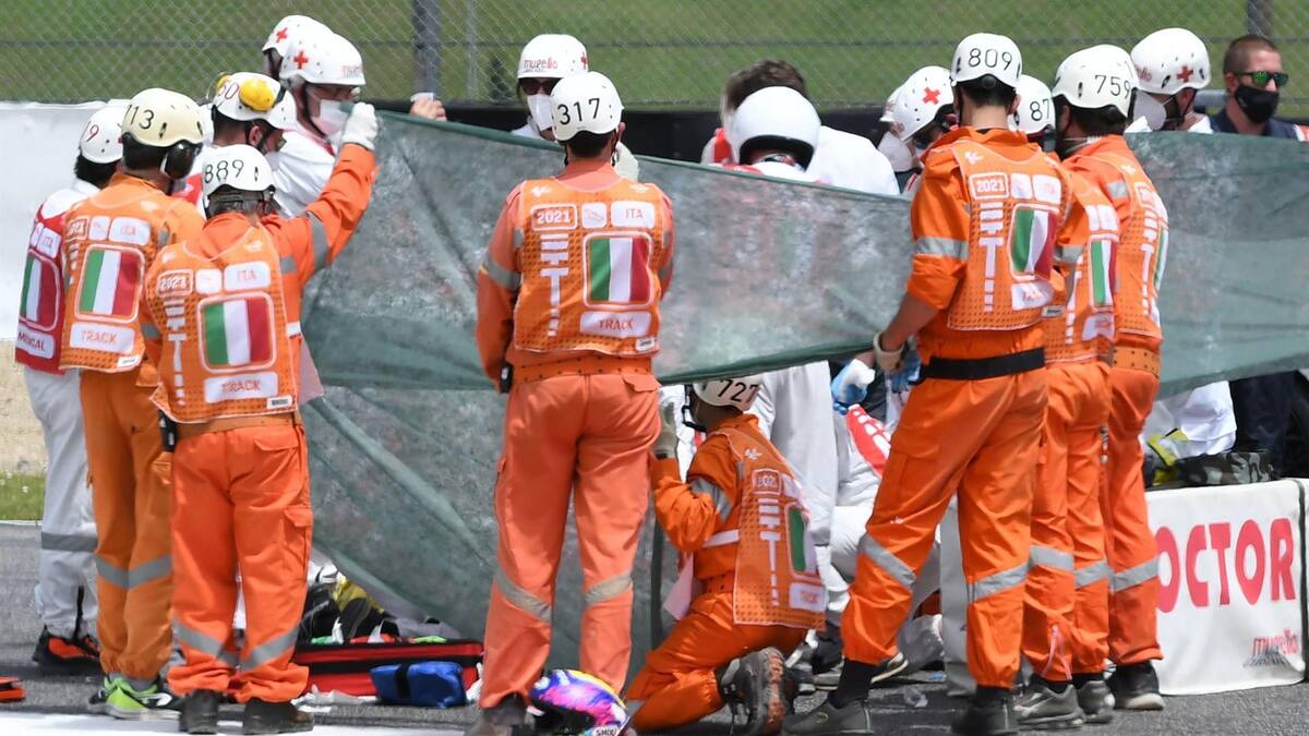 Las primeras noticias sobre su estado hablaban de un edema cerebral y un fuerte traumatismo torácico, según confirmó el responsable médico de la Federación Internacional de Motociclismo (FIM), el italiano Giancarlo di Filippo.