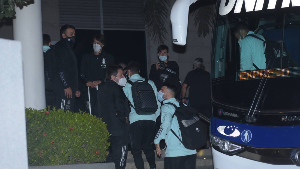 El equipo dirigido por Lionel Scaloni aterrizó este domingo, a las 9:07 p.m., en el aeropuerto Ernesto Cortissoz, y se hospedó en el Hilton Garden Inn.
