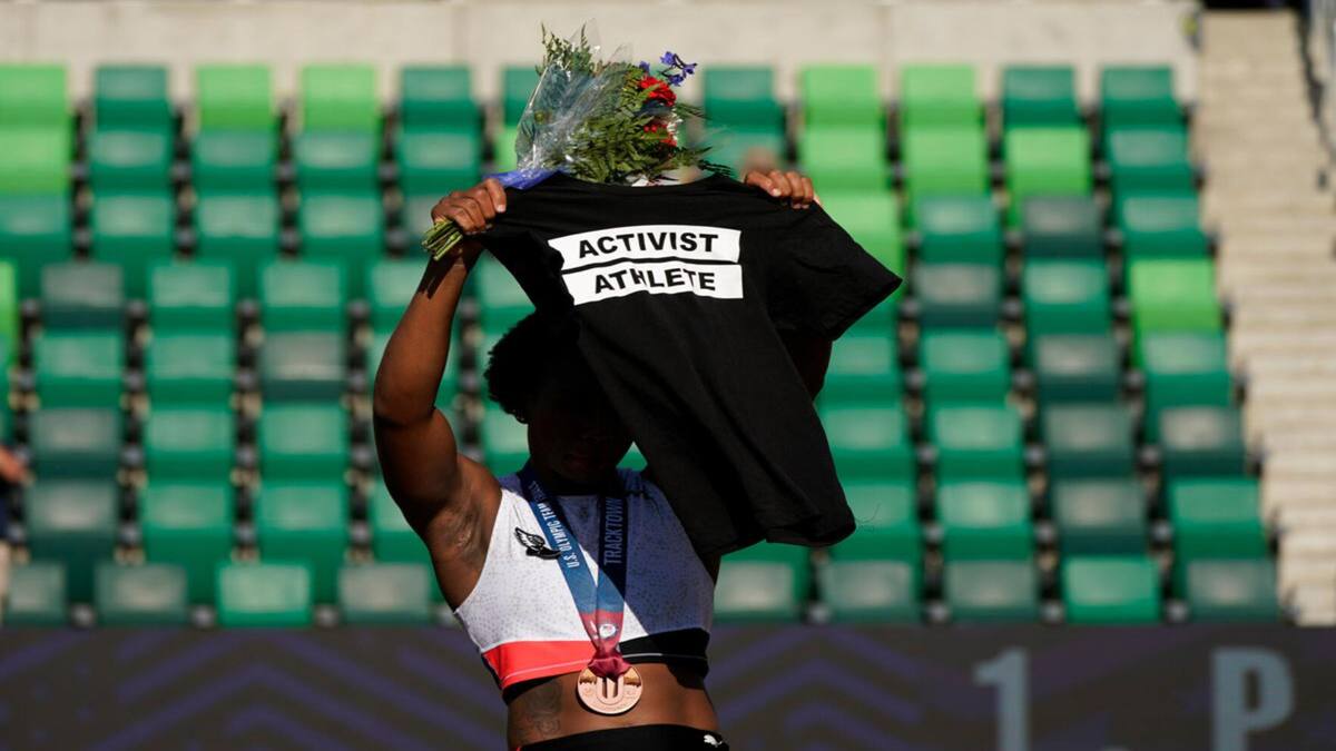 Al llegar al podio para recibir la medalla de bronce, Berry se giró y evitó ponerse frente a la bandera de Estados Unidos; para finalmente quitarse una camiseta negra con las palabras 'Atleta activista' estampadas en la parte delantera y ponérsela sobre la cabeza.