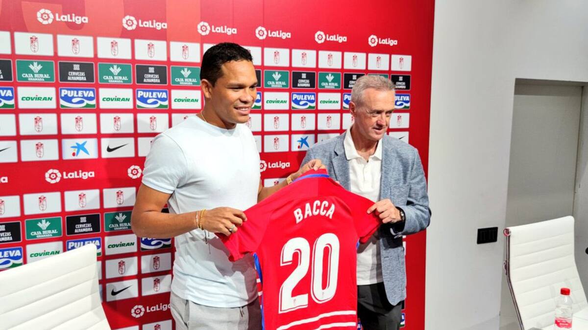 El colombiano Carlos Bacca, último fichaje del Granada, afirmó en su presentación que espera aportar 'experiencia y personalidad', además de goles, en su tercer equipo en España, tras el Sevilla y el Villarreal, y que van a 'trabajar por el objetivo de Europa', porque llega a un club que 'sigue creciendo temporada a temporada'.