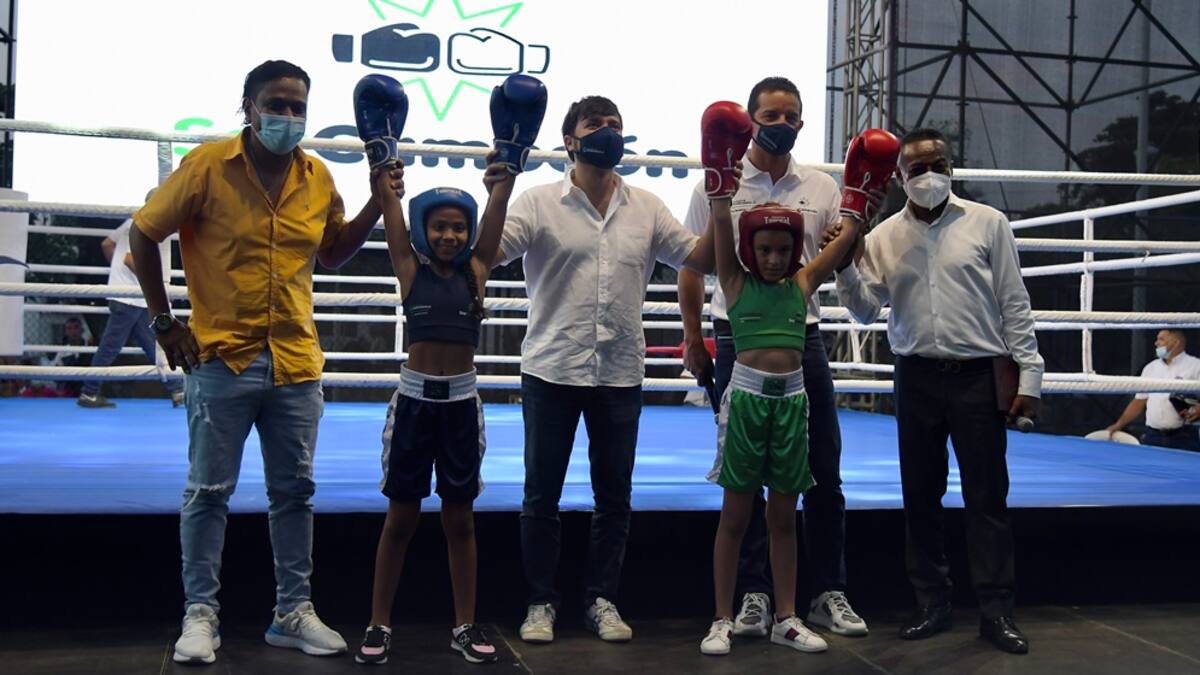 El evento, que se realizó en un ring en la mitad del parque, finalizó con una corta velada boxística de seis combates de tres asaltos cada uno.