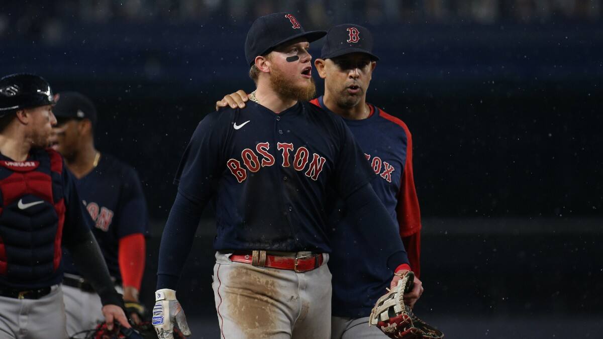 El piloto de los Medias Rojas, Alex Cora, sacó brevemente a su equipo del campo en la sexta entrada el sábado por la noche después de que Verdugo fuera golpeado en la espalda por una pelota lanzada desde los asientos del jardín izquierdo. No resultó herido.