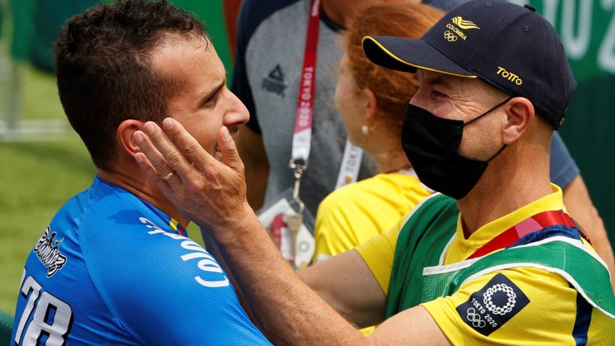 'Fue una caída en la preparación, se me inflamó la pierna. Llo tuve callado, no dije las cosas y ya. Una locura estar aquí, darle podio otra vez a Colombia. Saludos a mi familia. Sin ellos no estaría en este podio olímpico', comentó el chico de bronce.