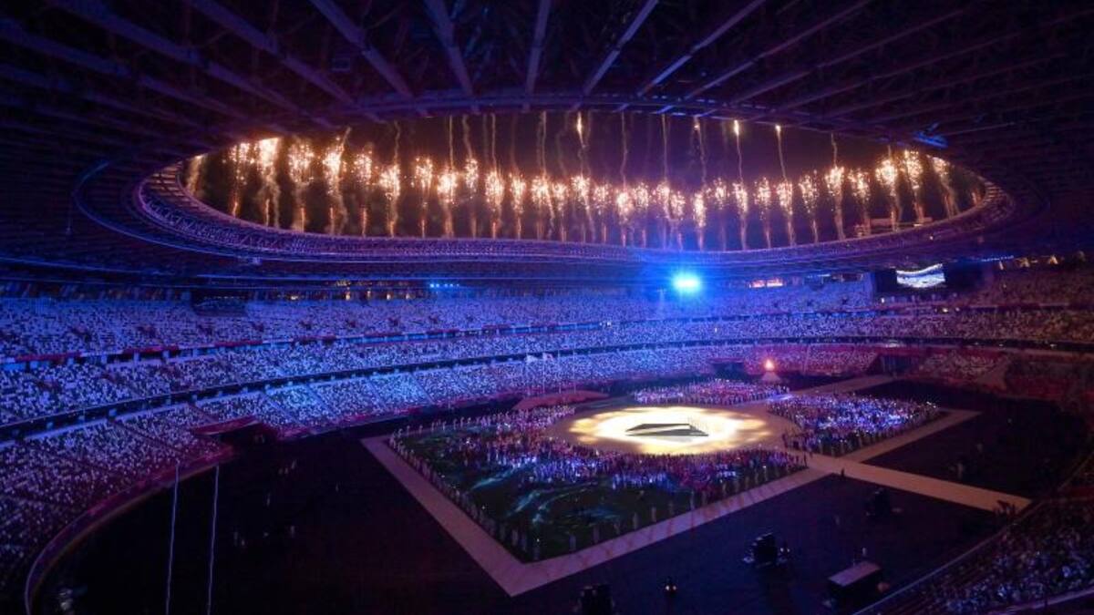 Suena una banda sonora muy especial, la de una de las películas japonesas más aclamadas de la historia del cine, 'Cuentos de Tokio' (1953), la obra maestra de Yasujiro Ozu y abre la ceremonia la bandera de Japón, unos anfitriones que han demostrado que avanzan contra viento y marea.