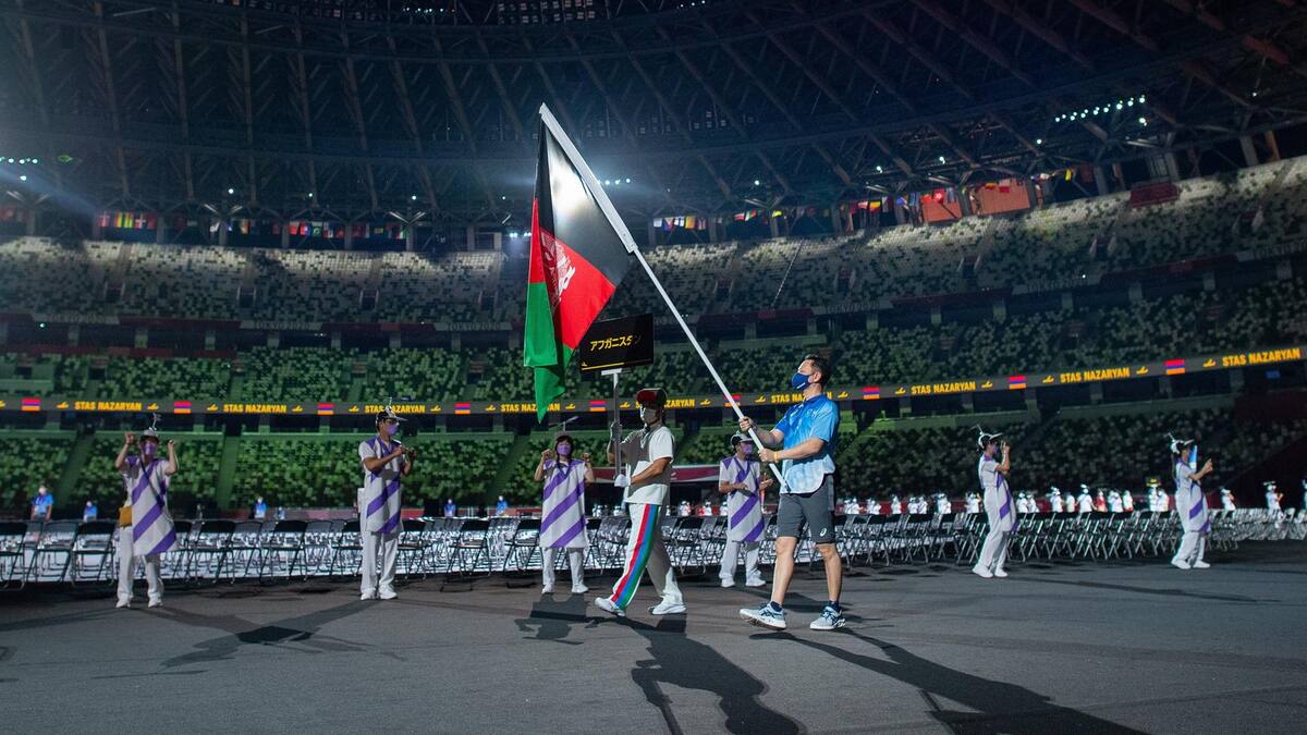 La bandera de Afganistán desfiló este martes en solitario en la ceremonia de inauguración de los Juegos Paralímpicos de Tokio en homenaje a la ausencia de los dos paratletas que no pudieron volar a Japón a raíz de la toma de poder de los talibanes.
