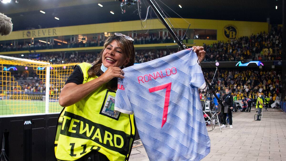 Cristiano Ronaldo dio un balonazo a una mujer del equipo de seguridad del estadio en el calentamiento del partido con el Young Boys y, tras el encuentro, le regaló su camiseta.