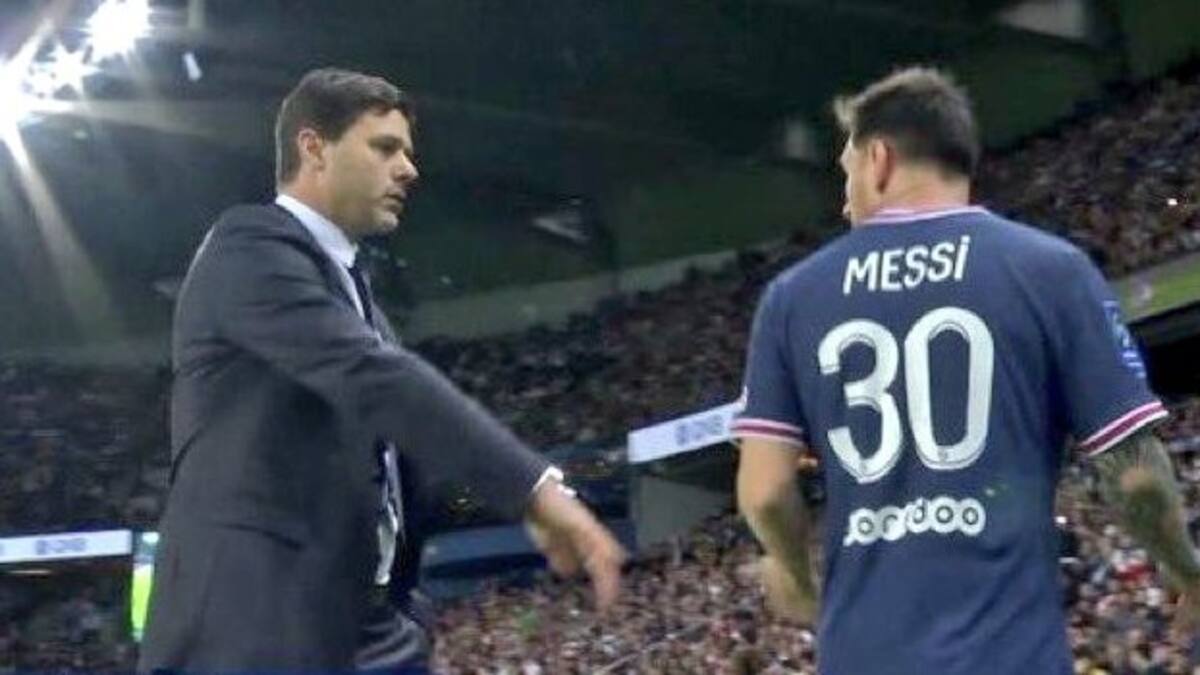 Lionel Messi se molestó con Mauricio Pochettino al ser sustituido durante el partido que el PSG le ganó agónicamente al Lyon 2-1, este domingo en el Parque de los Príncipes la Liga de Francia.
