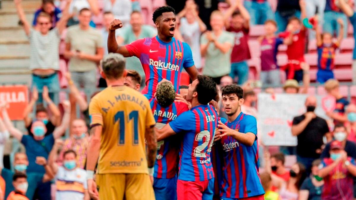 'La verdad es que no me imaginaba un regreso así, estoy muy feliz por la victoria, quiero agradecer todo a los doctores y a los fisioterapeutas que han estado conmigo durante la lesión, y a los aficionados, es impresionante', dijo Ansu Fati en declaraciones a Movistar+.
