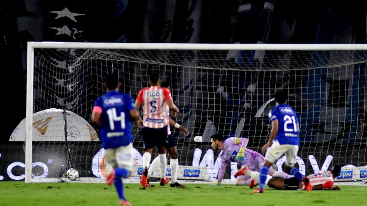 59. Error de Homer Martínez, que pierde infantilmente un balón y deja a Fernando Uribe mano a mano con el arquero Sebastián Viera, pero el remate del delantero sale desviado. ¡Se salva Junior!