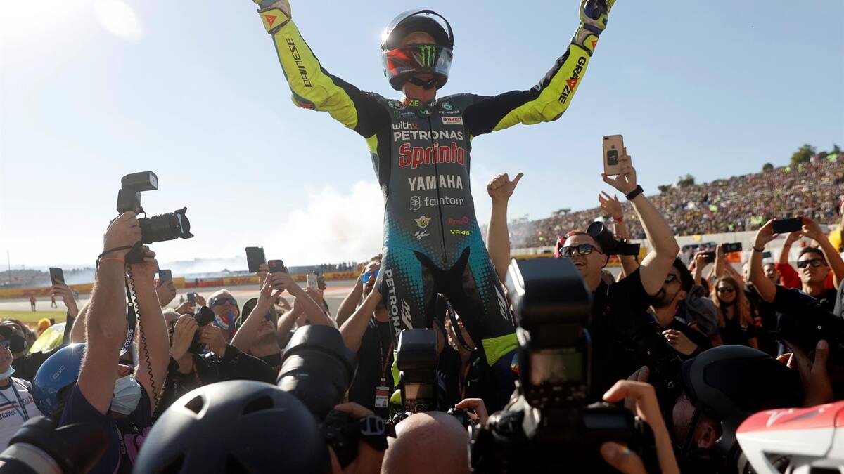 El italiano Valentino Rossi puso este domingo 'punto y final' a su carrera deportiva después de 432 grandes premios y 26 temporadas en las que ha logrado nada menos que nueve títulos mundiales, uno de 125 c.c. (1997), otro en 250 c.c. (1999) y siete de 500/MotoGP (2001, 2002, 2003, 2004, 2005, 2008, 2009) y ha conseguido elevar el motociclismo a cotas nunca alcanzadas gracias a sus celebraciones, su espectacularidad sobre la pista y la manera de hacer las cosas que han cautivado a los aficionados al motociclismo de los cinco Continentes que desde mucho antes de su retirada ya lo han considerado una leyenda.