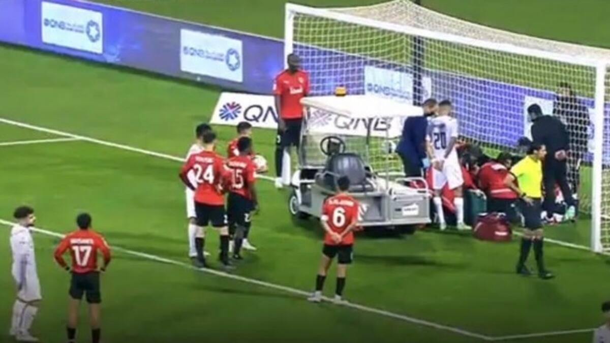 El futbolista quedó tendido dentro de una portería a los 42 minutos del partido tras desmayarse. Los servicios médicos de los clubes le atendieron de urgencia en el propio césped del estadio Thani bin Jassim y minutos después accedió una ambulancia.
