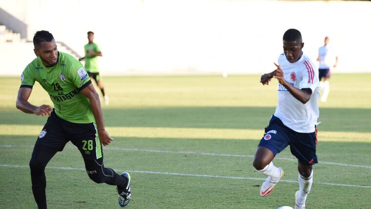 Colombia también jugó dos tiempos de 30 minutos ante Real Cartagena y resultó ganador 4-1 con tres anotaciones de Borja y una del juvenil de Envigado, Yaser Asprilla.
