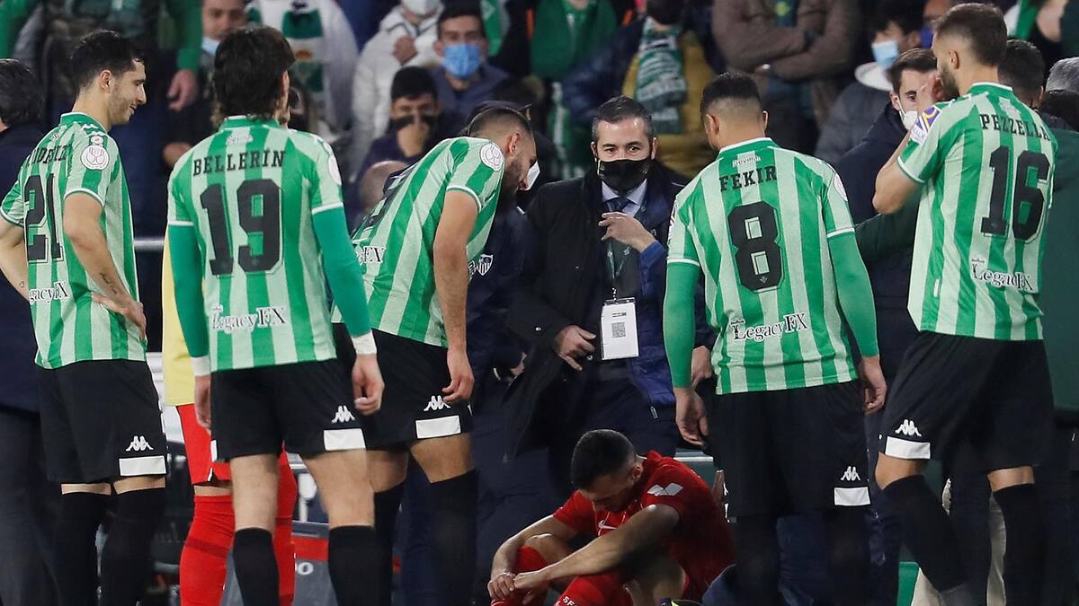 'Se suspende el partido de octavos de final de Copa del Rey entre el @RealBetis y el @SevillaFC. La RFEF condena todo acto de violencia en los terrenos de juego', publicó, poco antes de las once de la noche, la Federación Española en su cuenta de Twitter.