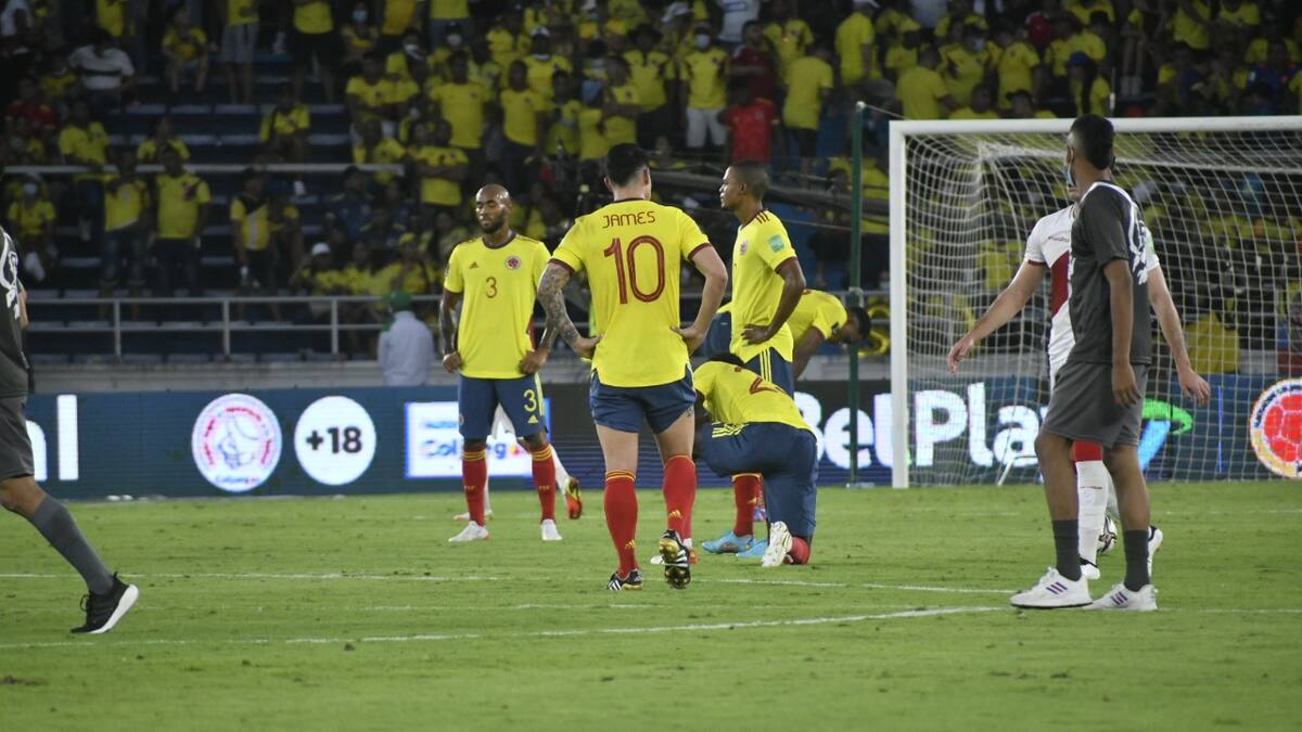James Rodríguez fue el único que mostró su malestar, llevándose el dedo índice a la boca, pidiendo silencio y recriminando la actitud de un sector de la hinchada, molesta por la derrota ante el cuadro inca, que deja a la Selección fuera de los puestos de clasificación al Mundial de Catar falta de tres jornadas para el fin de la Eliminatoria Sudamericana.