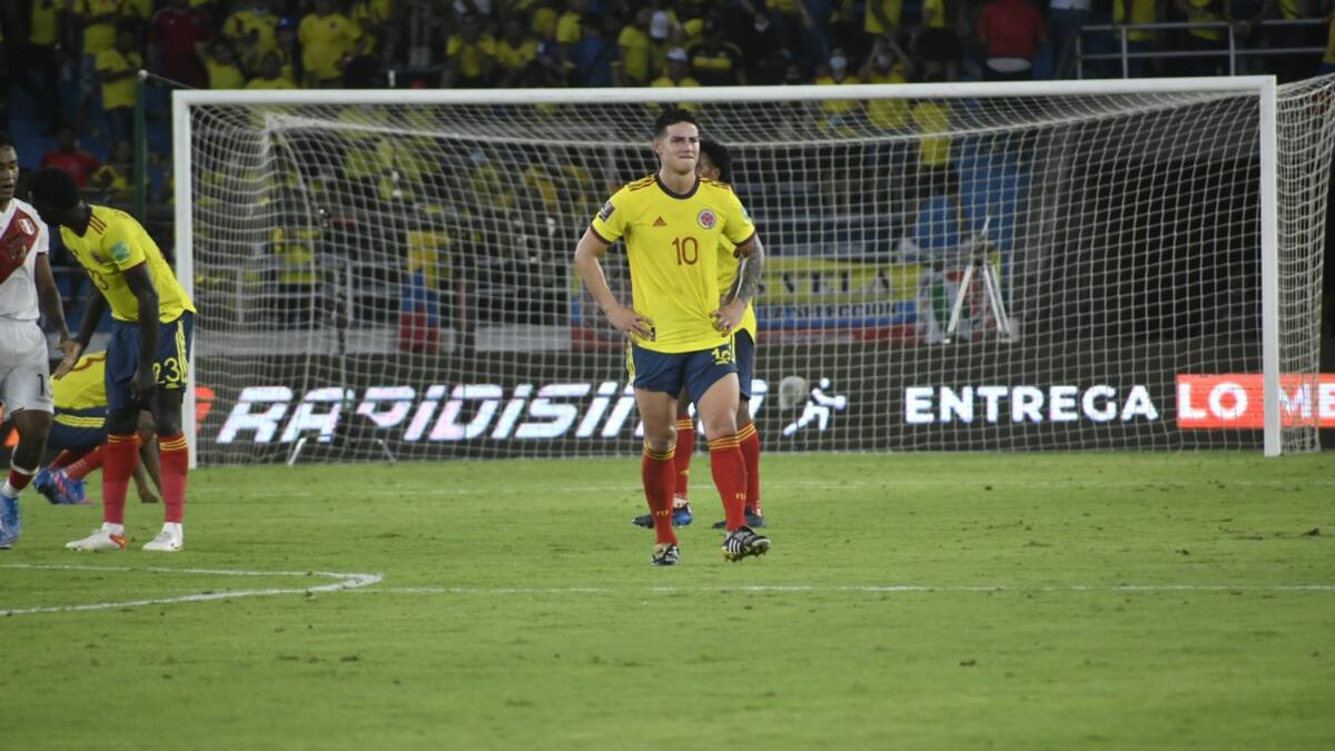 James Rodríguez fue el único que mostró su malestar, llevándose el dedo índice a la boca, pidiendo silencio y recriminando la actitud de un sector de la hinchada, molesta por la derrota ante el cuadro inca, que deja a la Selección fuera de los puestos de clasificación al Mundial de Catar falta de tres jornadas para el fin de la Eliminatoria Sudamericana.