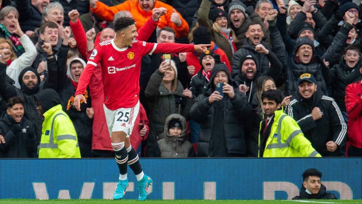 Los de Ralf Rangnick volvieron a hacer una primera parte decente, en la que Jadon Sancho marcó su primer gol en Old Trafford, al culminar un contraataque iniciado por Bruno Fernandes y conducido por Marcus Rashford.