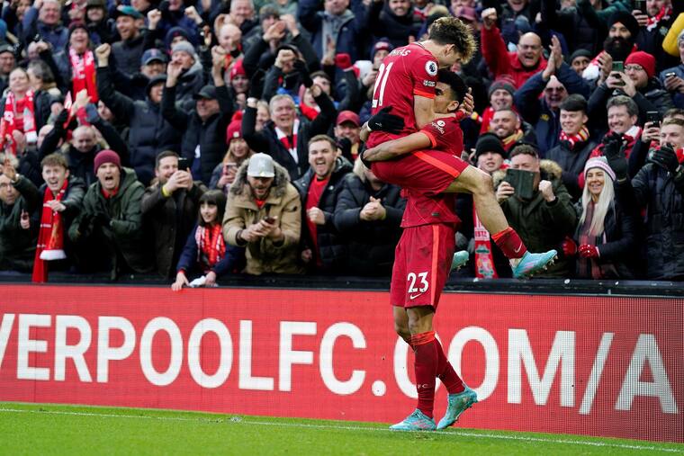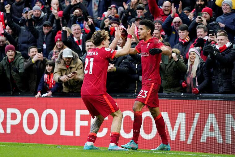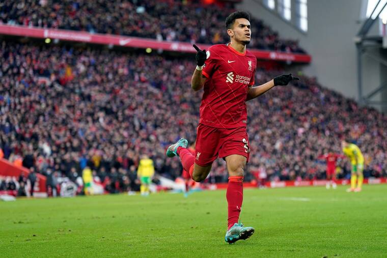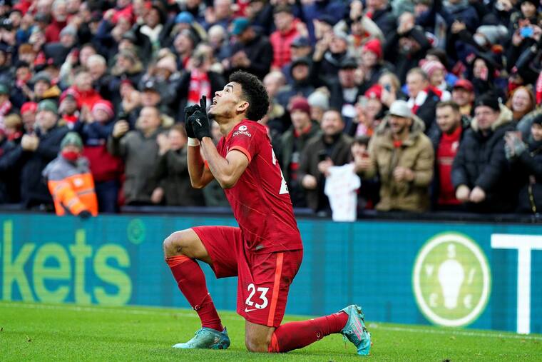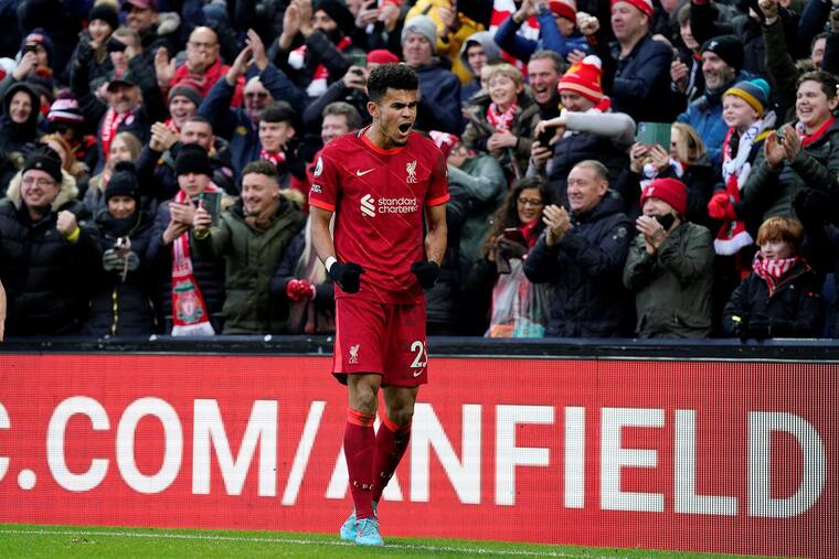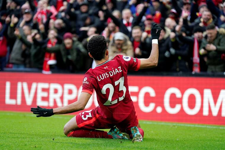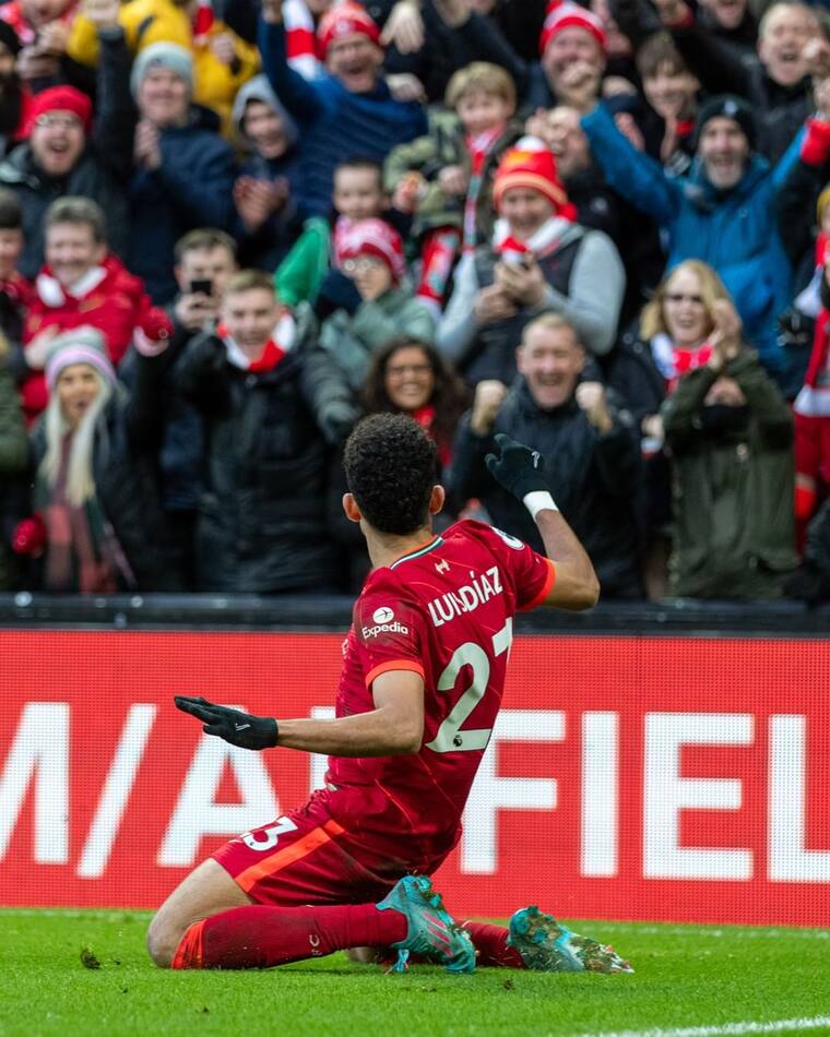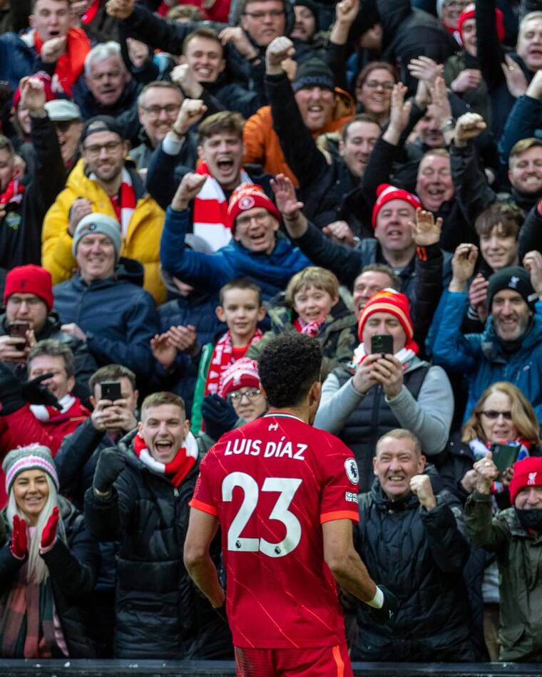 Las imágenes de la celebración del guajiro Luis Díaz luego de anotar su primer gol oficial con el Liverpool en la Premier League.