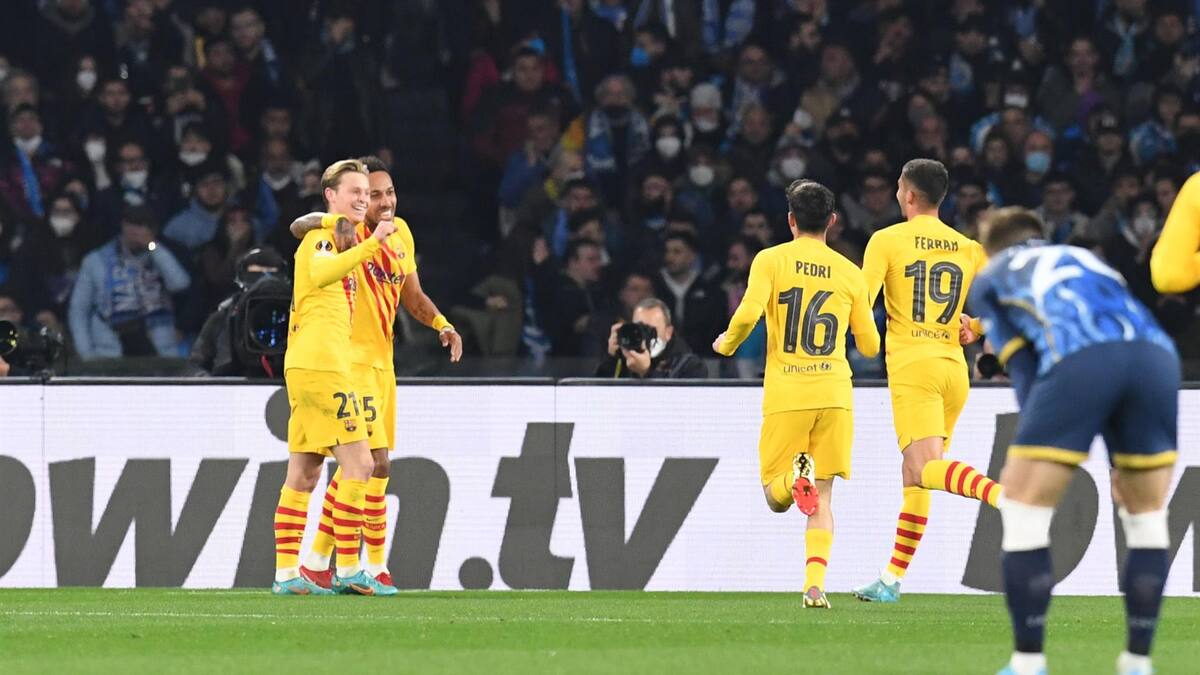 El Barcelona dejó a un lado su habitual sufrimiento como visitante en las grandes noches europeas de los últimos años para firmar una exhibición, ante el Nápoles (2-4), en el Estadio Diego Armando Maradona, testigo del gran partido que hicieron los azulgranas, clasificados para los octavos de final de la Liga Europa tras el 1-1 de la ida.