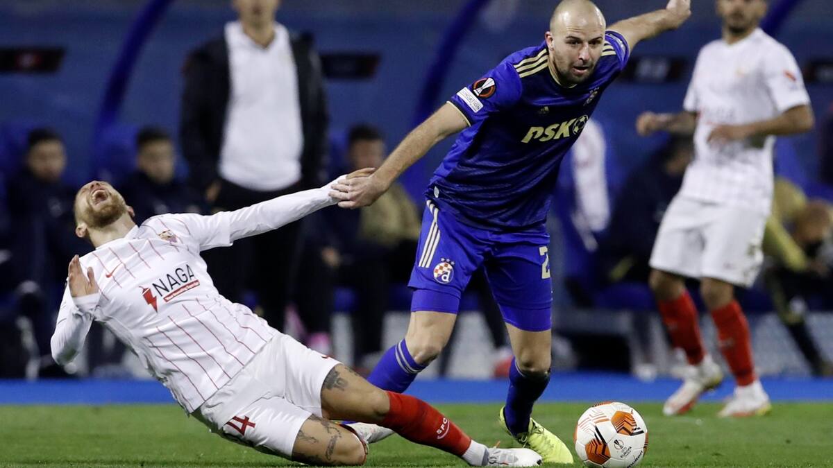 El Sevilla perdió 1-0 en el campo del Dinamo de Zagreb y sufrió mucho para hacer valer la renta de 3-1 que logró en la ida, aunque el resultado le vale para meterse en los octavos de final de la Liga Europa tras un partido que acabó con diez jugadores al ver el danés Thomas Delaney dos tarjetas amarillas.