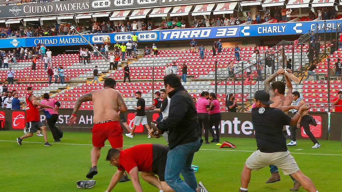 El Atlas, campeón de liga, derrotaba por 1-0 a los Gallos con un gol del argentino Julio Furch, cuando empezó una pelea en las gradas, que subió de todo, provocó invasión de la cancha y la suspensión del duelo en el minuto 62.