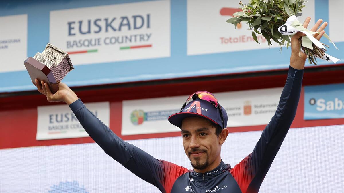El colombiano Daniel Felipe Martínez (Ineos), ganador al esprint de la cuarta etapa de la Itzulia, se mostró feliz en la meta de Zamudio por una victoria lograda ante rivales de mucha entidad, como el doble campeón del Mundo, el francés Julian Alaphilippe.