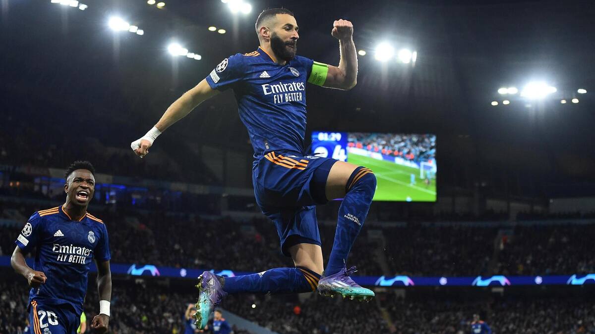 Con un Karim Benzema endulzado por la 'Champions', que marcó un golazo y un penalti a lo Panenka, y con un Vinícius que firmó una internada a toda velocidad por la banda derecha que rubricó con un tanto de muchos quilates, el Real Madrid neutralizó las dianas de Kevin de Bruyne, Gabriel Jesús, Phil Foden y Bernardo Silva, para conseguir que el cruce se decida en Madrid.