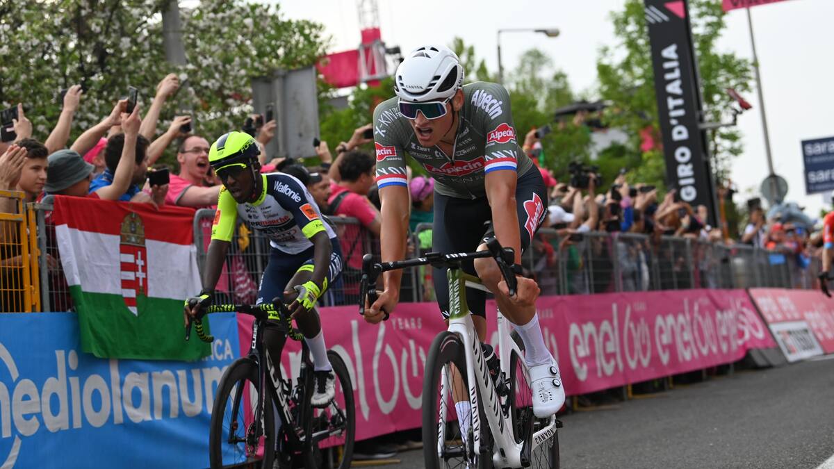 Van der Poel debutó en el Tour de Francia en 2021 y logró el sueño de enfundarse el ‘Maillot Amarillo’ con triunfo de etapa. Esta vez, en su debut en el Giro tenía la ilusión de verse con la ‘Maglia Rosa’. Y lo consiguió imponiendo su ley en la primera etapa en tierras húngaras.