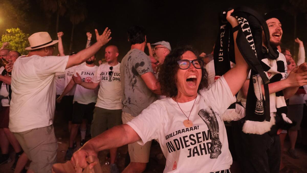 La fiesta no solo era en el Sánchez Pizjuán. Más de 50.000 aficionados congregados en el Deutsche Bank Park, estadio del Eintracht Frankfurt, también saltaron y festejaron de emoción tras la anotación del jugador de la Selección Colombia.