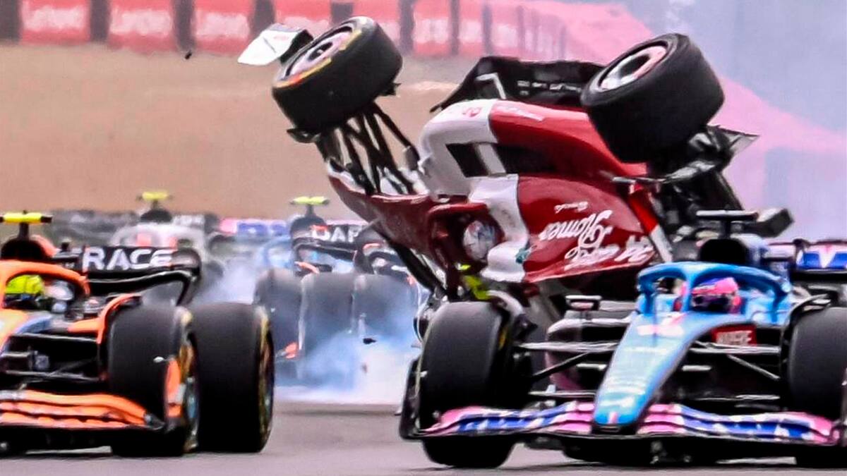 El choque entre ambos provocó una reacción en cadena que afectó también al francés Esteban Ocon (Alpine), al japonés Yuki Tsunoda (Alpha Tauri) y al tailandés Alex Albon (Williams), que se llevó golpes por todos los lados y que, al igual que el primer chino que corre en la F1, fue trasladado, por precaución, al centro médico del circuito; desde donde se informó de que todos estaban razonablemente bien, antes de que la organización diese vía libre para que se ofreciesen la repetición de las imágenes del aparatoso accidente.